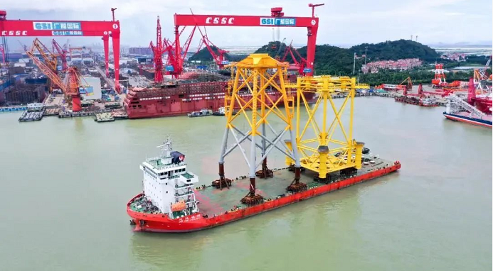 日前,由中國船舶集團旗下廣船國際承建的廣東陽江南鵬島300兆瓦海上風電項目首套導管架及輔助平臺順利交運。這是廣船國際承建并交運的首批首個風電導管架,也是目前國內最大的風電導管架,標志著廣船國際在風電業(yè)務領域實現(xiàn)了經營、生產、交付全環(huán)節(jié)突破,對后續(xù)承接風電項目業(yè)務、拓展風電市場具有重要意義。