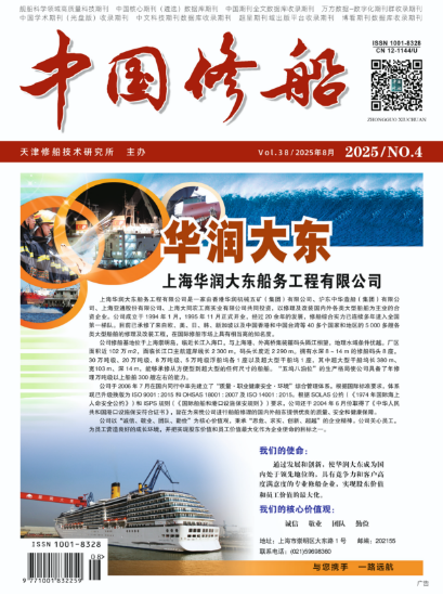 《中國(guó)修船》期刊于1987年創(chuàng)辦,是國(guó)內(nèi)公開發(fā)行的修船行業(yè)綜合性科技期刊,是中國(guó)造船工程學(xué)會(huì)修船學(xué)術(shù)委員會(huì)的會(huì)刊。主管單位是中國(guó)船舶集團(tuán)有限公司,主辦單位是天津修船技術(shù)研究所,由《中國(guó)修船》編輯部編輯出版。《中國(guó)修船》設(shè)置“技術(shù)交流”“維修理論”“海洋平臺(tái)”“經(jīng)營(yíng)管理”“經(jīng)驗(yàn)集錦”等欄目,主要為修船業(yè)、航運(yùn)界的科研院所及相關(guān)的船舶配套廠提供船舶維修信息、管理與技術(shù)服務(wù),已成為工程技術(shù)人員和管理干部學(xué)習(xí)交流的園地,是了解中國(guó)修船市場(chǎng)、工藝技術(shù)及設(shè)備發(fā)展動(dòng)向的重要窗口。