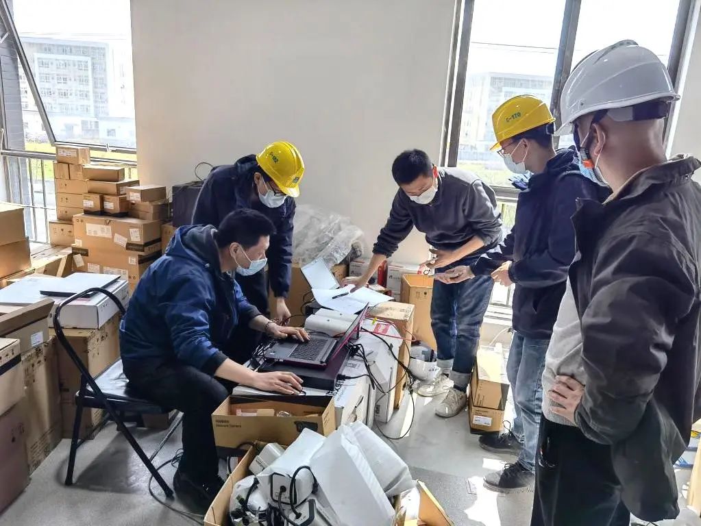 七一六所黨委副書記、所長顧浩接到任務(wù)后立即組織研究部署,克服連云港本地疫情的重重困難,迅速在當?shù)丶Y(jié)專業(yè)隊伍,同時組織在滬所屬單位抽調(diào)精兵強將,聯(lián)合集團公司在滬兄弟單位,組成弱電安防施工團隊,分批上島集結(jié)開展工作。