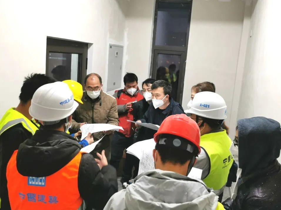 中船九院公司領(lǐng)導帶領(lǐng)項目團隊連續(xù)多日通宵在現(xiàn)場工作,及時協(xié)調(diào)工地各種情況,與集團公司相關(guān)部門并肩作戰(zhàn)、及時溝通,提高工作效能;同時堅持實時優(yōu)化設(shè)計,協(xié)調(diào)工程建設(shè)。項目設(shè)計負責人、中船九院副總建筑師王川第一時間組織團隊明確職責分工,確定了現(xiàn)場設(shè)計、后方設(shè)計、現(xiàn)場管理、外場支持等多專業(yè)協(xié)同配合機制,確保多條線同時作戰(zhàn)、運作高效??偣こ處燑S延驅(qū)車前往長興島專送工程保障設(shè)備,長興島實行“只進不出”,他就直接加入現(xiàn)場設(shè)計團隊,10天沒有下島。設(shè)計團隊中三位女設(shè)計師沈清清、胡雁、沈峻,更是巾幗不讓須眉,創(chuàng)造性地解決了暖風系統(tǒng)設(shè)計等一系列難題,堅守一線直到項目最終交付。項目管理團隊的戴鳳波、徐詠春、欒海林、王后軍、屈杰、倪冬輝等人把現(xiàn)場當作家,3天只在賓館住了3個小時,其余時間都在車上、辦公桌上度過。項目部顧建章、汪凱則協(xié)調(diào)運輸通行資源,解決了建設(shè)期間工程人員的基本飲食問題。與此同時,還有更多的人在后方作戰(zhàn)斗支撐,中船九院建筑一院院長曾志堅迅速組織本部設(shè)計團隊,緊急將居家辦公的相關(guān)專業(yè)骨干召回,組成了包括張瓊、瞿駸、郭鳳群、李嘯、蔣斌等18名骨干在內(nèi),建筑、結(jié)構(gòu)、水、電、風、經(jīng)濟各專業(yè)齊全的團隊。之后因項目需要,胡雁、瞿革、瞿駸上島加入現(xiàn)場設(shè)計團隊。