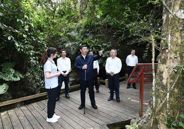 11日下午,習(xí)近平總書記到海南島中南部的五指山市考察調(diào)研。海南熱帶雨林國家公園是我國首批5個(gè)國家公園之一。習(xí)近平總書記深入五指山片區(qū),沿木棧道步行察看公園生態(tài)環(huán)境,不時(shí)停下腳步,詢問樹木生長、水源涵養(yǎng)、動植物資源保護(hù)等情況。
