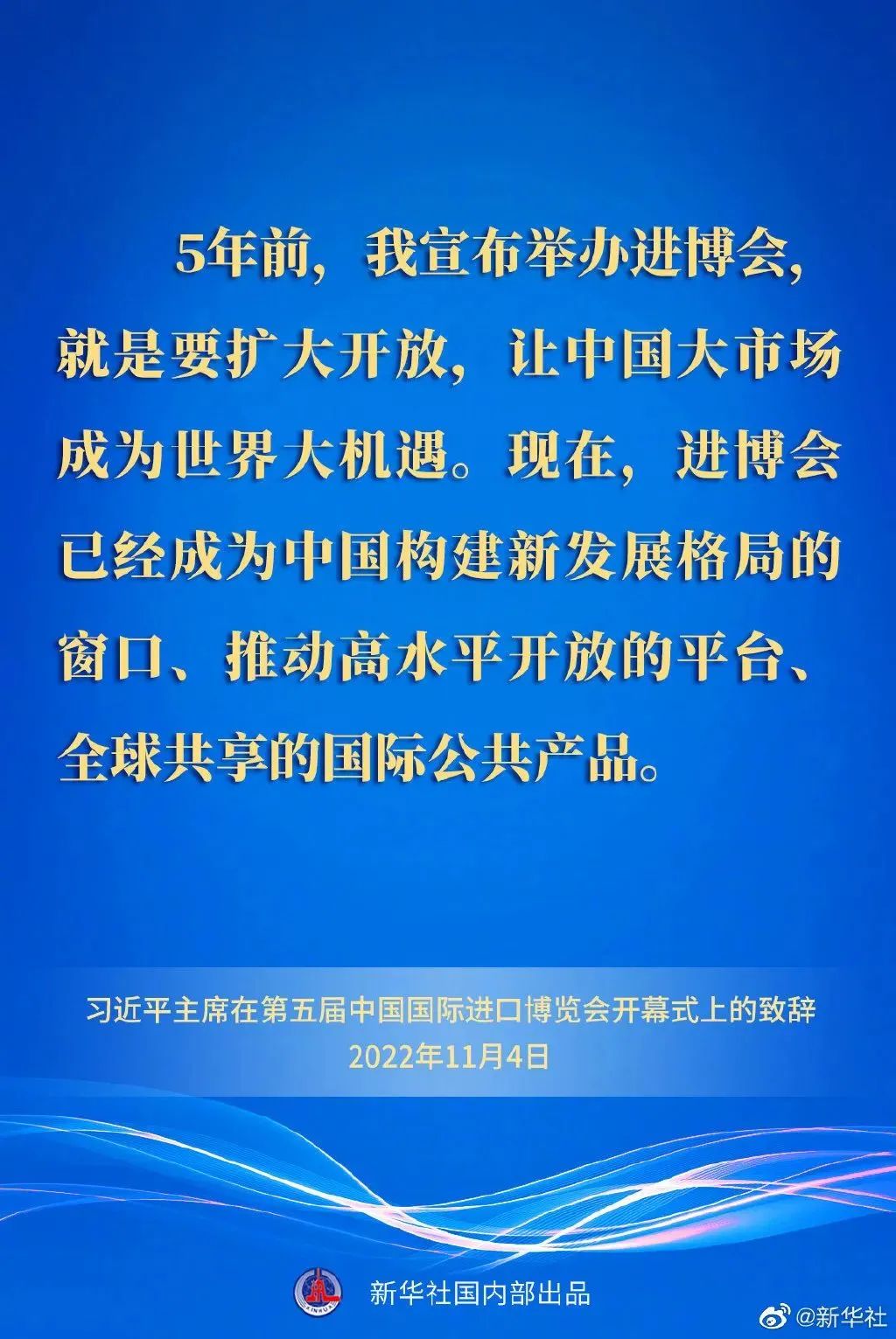 11月4日晚,國(guó)家主席習(xí)近平以視頻方式出席在上海舉行的第五屆中國(guó)國(guó)際進(jìn)口博覽會(huì)開幕式并發(fā)表題為《共創(chuàng)開放繁榮的美好未來(lái)》的致辭。