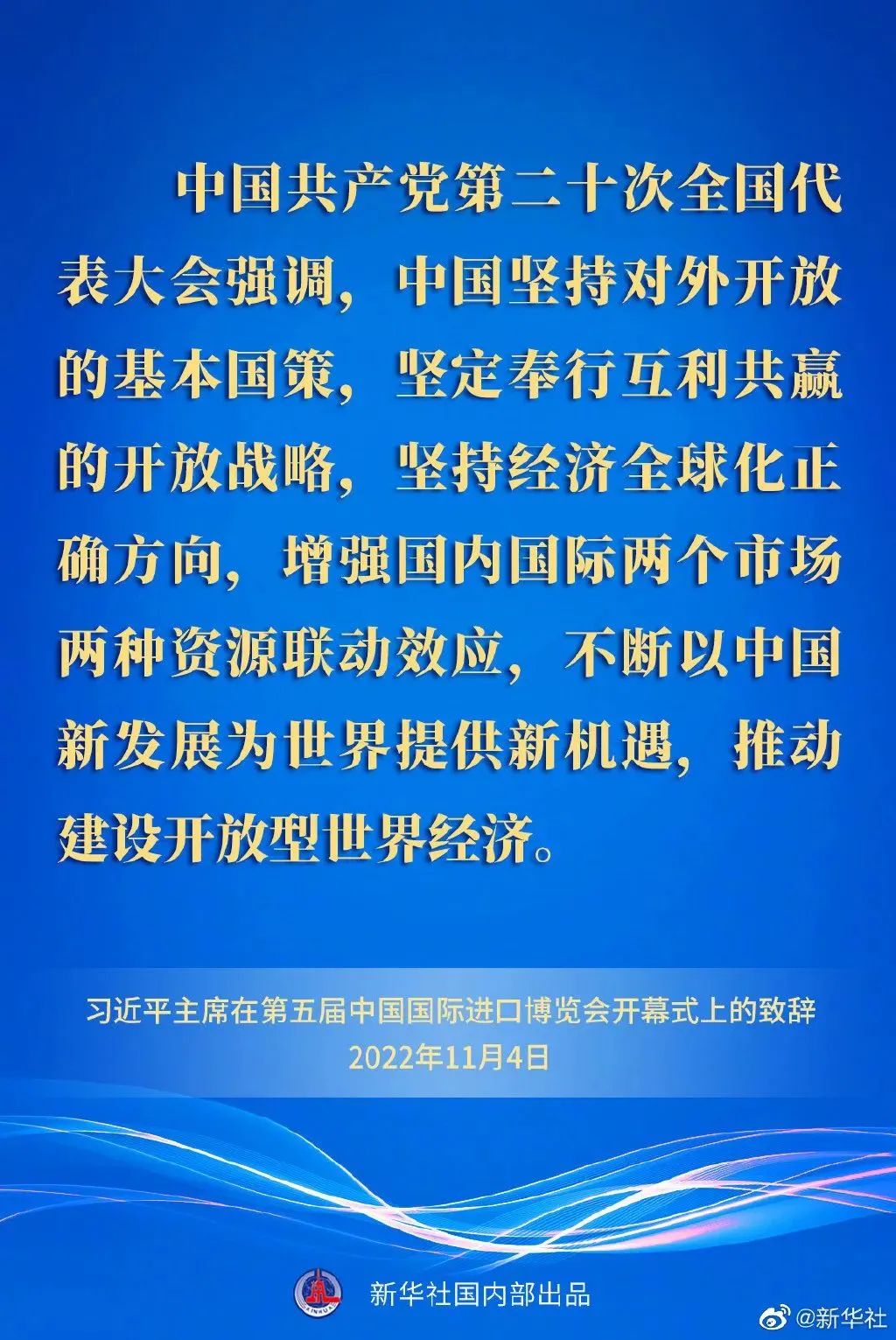 習(xí)近平指出,中國(guó)共產(chǎn)黨第二十次全國(guó)代表大會(huì)強(qiáng)調(diào),中國(guó)堅(jiān)持對(duì)外開放的基本國(guó)策,堅(jiān)定奉行互利共贏的開放戰(zhàn)略,堅(jiān)持經(jīng)濟(jì)全球化正確方向,增強(qiáng)國(guó)內(nèi)國(guó)際兩個(gè)市場(chǎng)兩種資源聯(lián)動(dòng)效應(yīng),不斷以中國(guó)新發(fā)展為世界提供新機(jī)遇,推動(dòng)建設(shè)開放型世界經(jīng)濟(jì)。