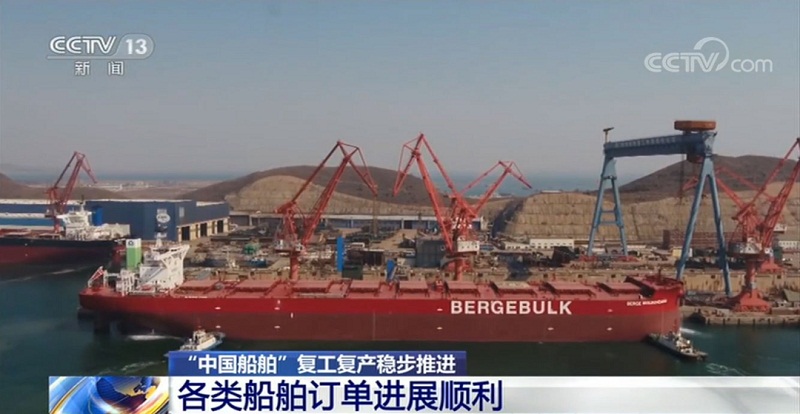 ????眼下全國在做好疫情防控的同時,復(fù)工復(fù)產(chǎn)的速度不斷加快,我國經(jīng)濟(jì)也呈現(xiàn)加速回暖態(tài)勢。我國是世界第一造船大國,船舶訂單一直穩(wěn)居全球第一,今年以來,中國船舶工業(yè)的生產(chǎn)和研發(fā)也受到疫情的一定影響。復(fù)工復(fù)產(chǎn)以來,我國船舶工業(yè)的生產(chǎn)進(jìn)展如何?下面就和記者一起走進(jìn)各大船廠去看看。