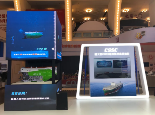 這次中國船舶集團(tuán)展區(qū)以“向海圖強(qiáng),創(chuàng)新引領(lǐng)”為主題,以“全面建設(shè)世界一流船舶集團(tuán)”的戰(zhàn)略目標(biāo)和“引領(lǐng)行業(yè)發(fā)展、支撐國防建設(shè)、服務(wù)國家戰(zhàn)略”的企業(yè)使命為主線,圍繞具有代表性、突破性、標(biāo)志性、引領(lǐng)性的自主品牌,以及高質(zhì)量裝備和工程項(xiàng)目,全面展示集團(tuán)公司在穩(wěn)定經(jīng)濟(jì)發(fā)展、帶動(dòng)科技創(chuàng)新、服務(wù)民生保障、推動(dòng)中國制造走向世界進(jìn)程中所取得的成就。
