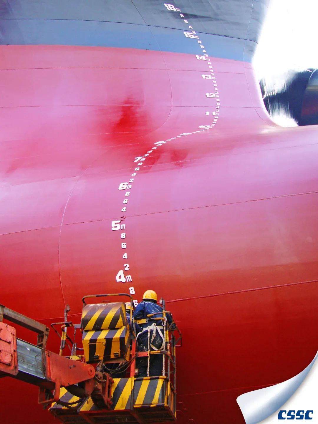 該片拍攝于中船澄西金山塢內(nèi)MARITIME VANESSA (HONGKONG) 船進(jìn)塢油漆涂裝和螺旋槳修理作業(yè)時(shí),創(chuàng)作主要利用船舶與現(xiàn)場作業(yè)人物大小形成超大反差,以獨(dú)特的視角展現(xiàn)了涂裝后新船的雄偉和迷人色彩。