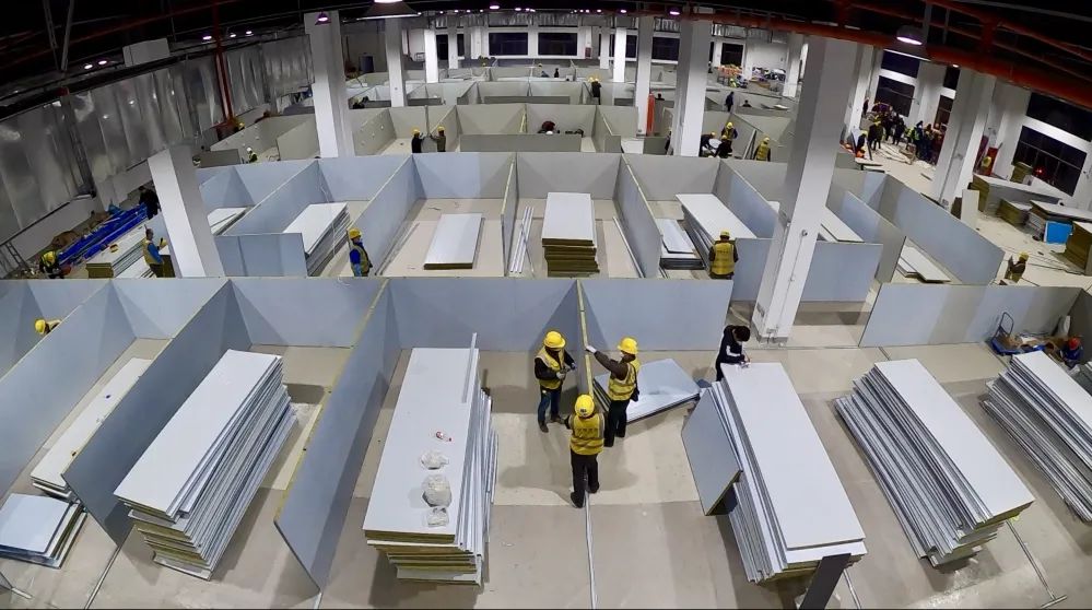 3月16日以來,長興島疫情態(tài)勢持續(xù)嚴峻?!拔萋┢赀B夜雨”,持續(xù)4天的大風大雨和氣溫驟降更增加了工作難度。用最短的時間建設成收治觀察點,就是與病毒賽跑?!霸缫恍r建成,就能少一批感染,多救一批病人”,本著這樣的目標和信念,項目組爭分奪秒,連續(xù)作戰(zhàn)。