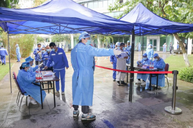 地處市區(qū)的廣州公司,迅速組建了一支以黨員為主的志愿者服務(wù)隊(duì),助力所在社區(qū)(鶴園居委會(huì))開展全員常規(guī)核酸檢測(cè)現(xiàn)場(chǎng)服務(wù)工作,以實(shí)際行動(dòng)配合完成了6000多名居民核酸檢測(cè)任務(wù)。該公司職教事業(yè)部2所學(xué)校2000余名學(xué)生分轄荔灣、黃埔兩區(qū),學(xué)校教職工主動(dòng)作為,積極配合醫(yī)護(hù)人員維護(hù)現(xiàn)場(chǎng)秩序、信息登記、查核健康碼等,順利完成2輪全員核酸檢測(cè)工作。
