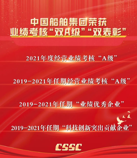 7月16日-17日,國務院國資委舉辦中央企業(yè)負責人研討班,公布了中央企業(yè)2021年度和2019-2021年任期經營業(yè)績考核結果,中國船舶集團榮獲年度和任期考核“雙A級”,并被評為任期“業(yè)績優(yōu)秀企業(yè)”和“科技創(chuàng)新突出貢獻企業(yè)”。