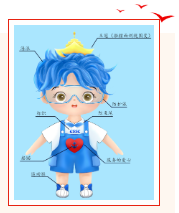 設(shè)計說明:圍繞“愛在深藍(lán)”志愿服務(wù)為主題設(shè)計了一名小男孩IP形象,深藍(lán)色的發(fā)色呼應(yīng)主題。紅色的帽子和三角巾突出志愿服務(wù)的形象與船舶青年熱血有愛志愿精神。雪白的T恤在胸口印有“愛在深藍(lán)”品牌LOGO,彰顯小男孩的身份與純潔進(jìn)步的“艦船報國、向海圖強(qiáng)”的船舶青年志向??蓯矍疑珘K明顯的IP形象設(shè)計,通過紅藍(lán)撞色使IP形象更具有吸引力。小男孩形象設(shè)計簡潔,方便進(jìn)行后期表情包、日歷、書簽等2D周邊設(shè)計,與3D實物生產(chǎn)。