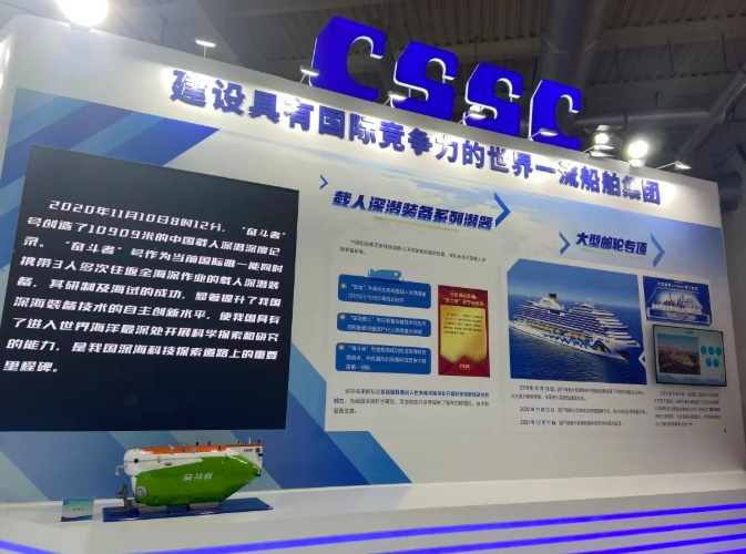 在重大科技專項工程展區(qū),中國船舶集團集中展示了在深??茖W研究和海洋資源開發(fā)領(lǐng)域深化實施的“蛟龍”號、“深海勇士”號、“奮斗者”號三型載人深潛裝備等一批重大科技專項工程,以及取得的突破性、標志性的成果。其中,展會現(xiàn)場展示的“奮斗者”號創(chuàng)造了10909米的中國載人深潛深度紀錄。
