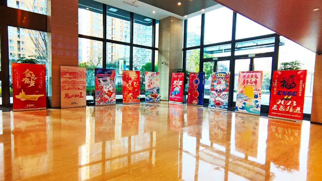 海報主體部分以國內(nèi)首臺深遠海浮式風電裝備“扶搖號”為創(chuàng)意點,通過含有“大風車”形象的寫意“春”字,表達中船海裝將在春風浩蕩中大展宏“兔”,在向海圖強征程中矢志奮斗!