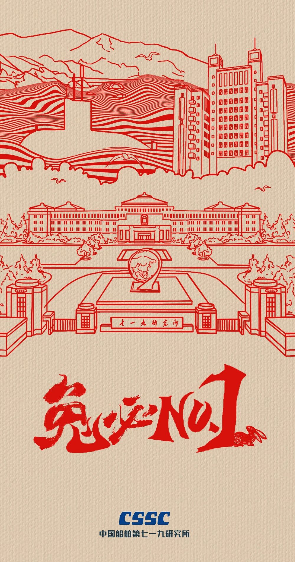 海報中所展現(xiàn)的元素,皆由大連造船元素組成,中間癸卯兔的頭冠裝飾以船錨、舵軸為主,下方航母在海中追風逐浪,象征大連造船必將在新時代發(fā)展中踏浪前行。
