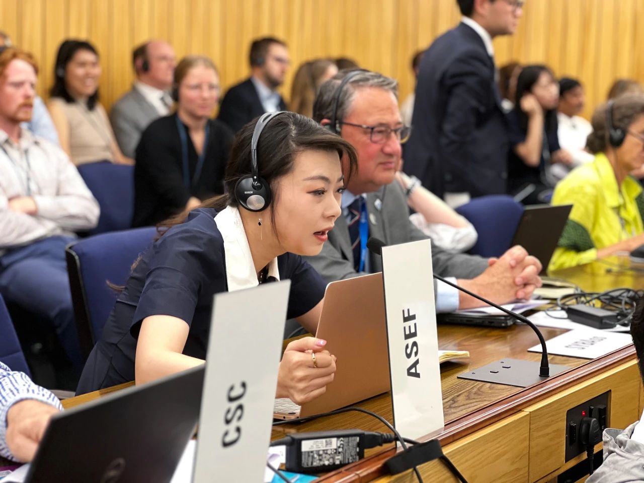 2023年7月7日,活躍造船專家聯(lián)盟(ASEF)秘書長(zhǎng)、中國(guó)船舶集團(tuán)十一所汪璇代表船舶工業(yè)界參與國(guó)際海事組織(IMO)海洋環(huán)境保護(hù)委員會(huì)第80次(MSC107)會(huì)議。會(huì)上,汪璇代表文件MEPC80/7/7的共同提出方發(fā)言,有力支撐中國(guó)代表團(tuán)在船用碳捕集技術(shù)(OCCS)的法律地位的立場(chǎng),為國(guó)際海事事務(wù)貢獻(xiàn)中國(guó)智慧,維護(hù)國(guó)家船舶工業(yè)利益。