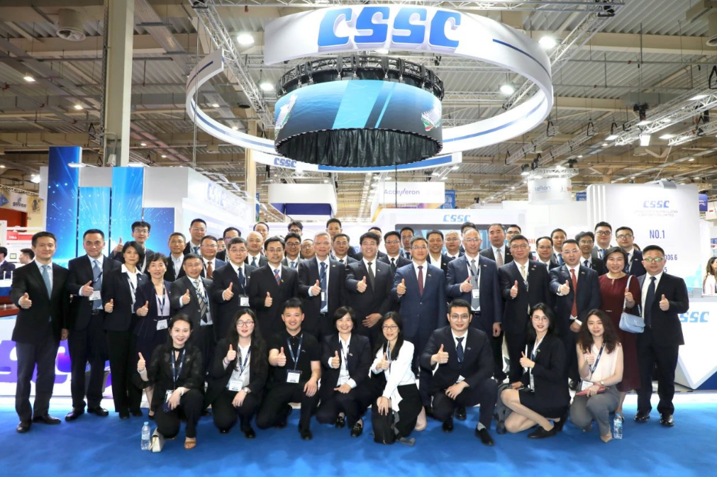 此次展會,中國船舶集團攜旗下19家成員單位參展,有關成員單位負責人率隊赴展會開展重點船海項目經(jīng)營洽談并拜訪當?shù)睾椭苓厙铱蛻簟<瘓F公司以“共贏未來”為參展主題,設置集團總體區(qū)、綠色航運解決方案區(qū)、低碳環(huán)保配套設備區(qū)共3個展示區(qū)域,重點展示了135500總噸大型郵輪、175000方LNG運輸船、24000箱超大型集裝箱船、210000噸氨燃料散貨船、LNG雙燃料VLCC等一系列高技術、高附加值明星產品,以及CPGC-WinGD 10X92DF-M甲醇雙燃料發(fā)動機、船用碳捕捉系統(tǒng)等全球船東高度關注的綠色低碳配套設備。同時,通過展臺上醒目的品牌標識、層級化的品牌體系圖、富有感染力的品牌推介視頻,首次面向全球客戶,立體化展示“中國船舶”品牌及下屬企業(yè)品牌和產品品牌體系,進一步強化了集團公司品牌形象。