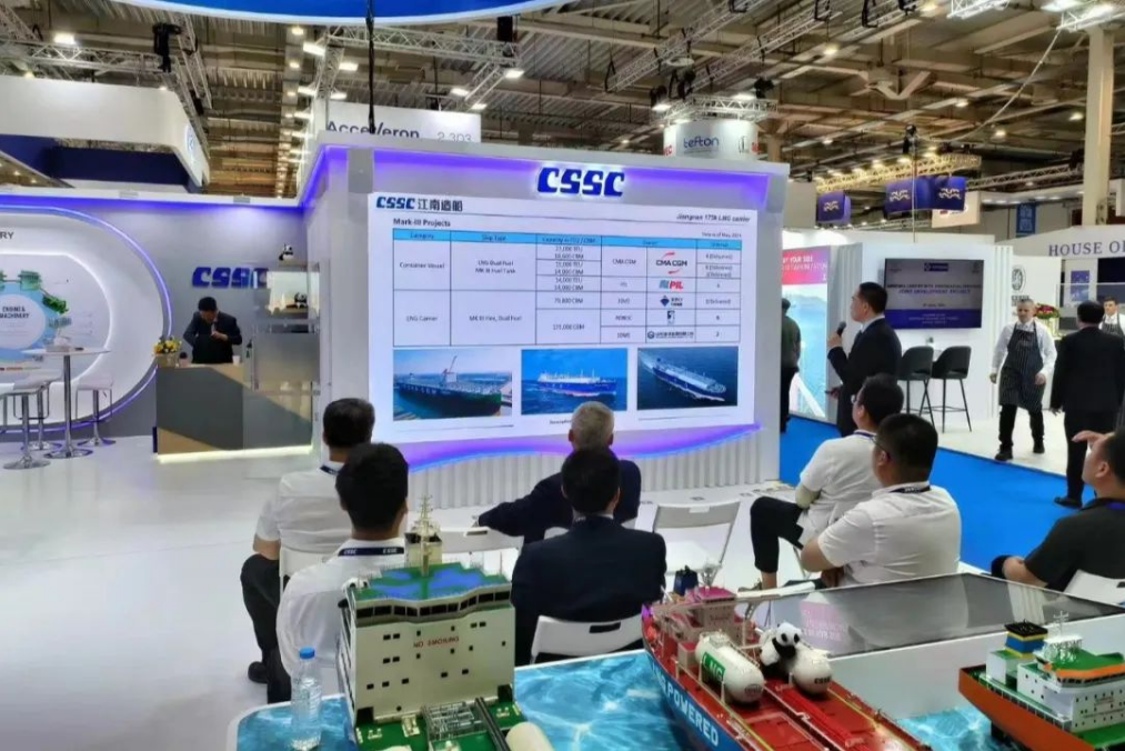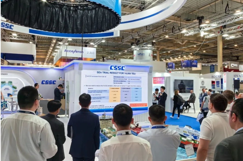 展會期間促成集團公司多家成員單位船海項目成功簽約,共計超50億元人民幣,包括中船貿易、廣船國際與EPS公司4艘11萬噸LRII型LNG雙燃料油輪項目簽約、與ASP公司2艘5萬噸MR甲醇雙燃料油輪項目簽約,中船貿易、大連造船與CAPITAL公司2艘30萬噸VLCC建造項目簽約,另外還簽訂了40多億元新造船項目意向書;同時,參展成員單位在集團公司展臺上開展了豐富的推介活動,包括江南造船“綠色船型家族”產品推介會、中船系統(tǒng)院“羅經(jīng)進入光纖時代”產品推介會、七一一所“全球首個全流程船用碳捕捉系統(tǒng)案例分享會”,吸引了眾多國際船東、船級社和設備廠商前來觀摩,并共同探討未來合作機遇。