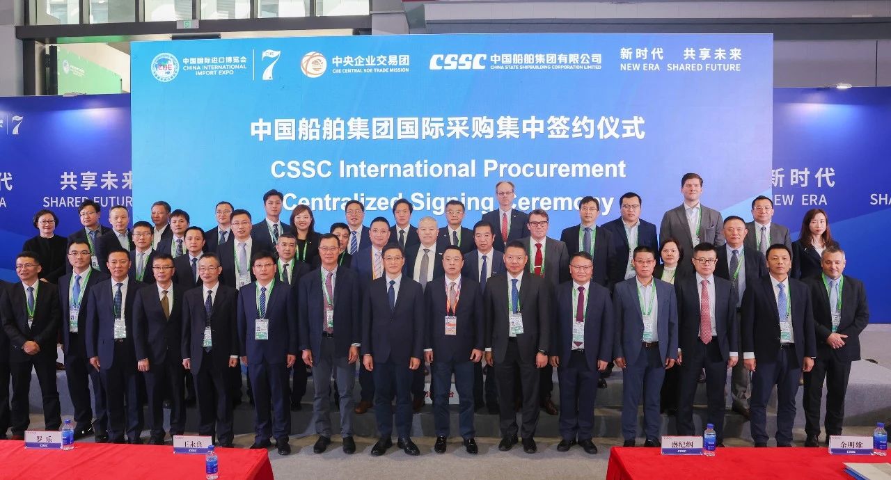 中國船舶集團(tuán)有限公司黨組成員、副總經(jīng)理盛紀(jì)綱應(yīng)邀參加第七屆進(jìn)博會(huì)暨虹橋國際經(jīng)濟(jì)論壇開幕式,出席11月6日下午舉行的第七屆進(jìn)博會(huì)國資委中央企業(yè)交易團(tuán)中國船舶交易分團(tuán)采購集中簽約儀式并致辭。