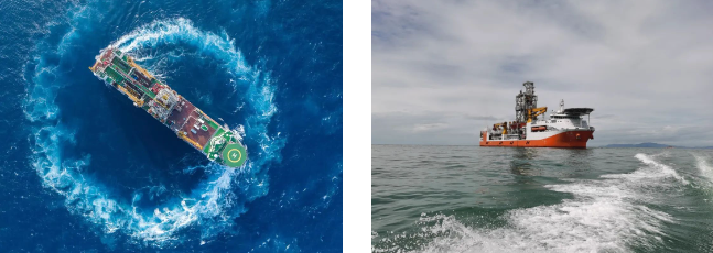 # 通過配置最先進的DP-3級動力定位系統(tǒng),自動調(diào)整船舶底部7臺推進器的轉向和推力大小,來抵抗海上風、浪、流作用在船上的載荷,使船舶在海上保持一定的水平位置;