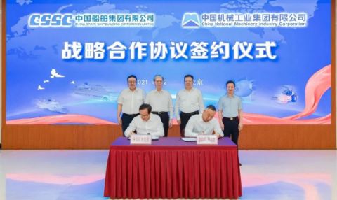 6月22日,中國船舶集團(tuán)有限公司與中國機(jī)械工業(yè)集團(tuán)有限公司在京簽署了戰(zhàn)略合作協(xié)議。中國船舶集團(tuán)黨組書記、董事長雷凡培,黨組副書記、總經(jīng)理楊金成,黨組成員、副總經(jīng)理錢建平,國機(jī)集團(tuán)黨委書記、董事長張曉侖,黨委副書記、總經(jīng)理吳永杰,黨委常委、副總經(jīng)理白紹桐出席了簽約儀式。楊金成、吳永杰分別代表雙方簽約。