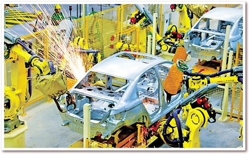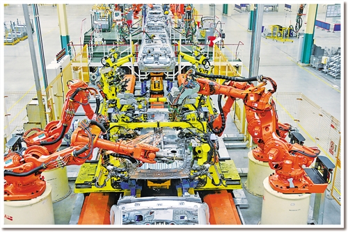 日前,記者在東風汽車公司旗下神龍汽車公司成都工廠焊裝車間看到,占地面積約10個足球場的車間儼然就是一個“機器人王國”:442臺各種機器人都在忙碌著,所有點焊、弧焊、激光焊、螺柱焊、涂膠、包邊、鉚接、部件搬運等“重活、累活”全部由機器人自動完成。焊裝分廠廠長孫繼勝介紹說,除442臺機器人外,車間還有另外一個“撒手锏”??六面體轉(zhuǎn)臺設備?!霸瓉砩a(chǎn)1個車型要建6條生產(chǎn)線,現(xiàn)在1條生產(chǎn)線就可以生產(chǎn)6種車型?!睂O繼勝說。