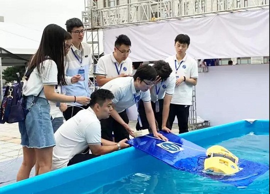 ????比賽當日,同學們更是頂住競爭壓力,在天氣非常惡劣的情況下,沉著應對,讓兩件航行器在水下出色地完成了指定動作,獲得了評委專家們的高度贊揚。