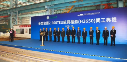 ????中國船舶集團所屬江南造船(集團)有限責任公司的2500TEU集裝箱船項目是長榮海運首次在中國內(nèi)地訂造新船。該系列船入NK船級社,采用中國船舶集團所屬上海船舶研究設(shè)計院最新優(yōu)化設(shè)計,加裝最新的Scrubber脫硫裝置。該船總長195.00米,垂線間長191.80米,型寬32.25米,型深17.00米,設(shè)計吃水10.00米,結(jié)構(gòu)吃水11.20米,設(shè)計航速不低于20節(jié)(NCR),貨艙內(nèi)集裝箱數(shù)922箱,甲板上集裝箱數(shù)1725 箱,甲板上冷箱數(shù)226箱。該船計劃于2021年交付。