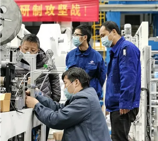 ????帶隊逆行的是鵬力塑造副總經(jīng)理王仕杰,一人承擔所有的外圍協(xié)調(diào)工作,不僅管好技術(shù)團隊的吃住行和安全防疫工作,還找到了非常緊缺的試機無紡布原料和口罩耳繩焊接機,極大地支撐了后續(xù)研制生產(chǎn)工作。
