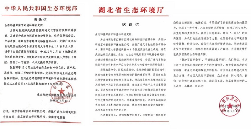 ????近日,國家生態(tài)環(huán)境部、湖北省生態(tài)環(huán)境廳分別發(fā)出表揚信和感謝信,對中國船舶集團(tuán)所屬中船綠洲等在疫情防控期間作出貢獻(xiàn)的單位給予高度贊揚,表示衷心的感謝,并對包含中船綠洲旗下環(huán)保公司陳紀(jì)賽、陳良義、王小峰、周浩在內(nèi)的13名生態(tài)環(huán)境“鐵軍”提出表揚。