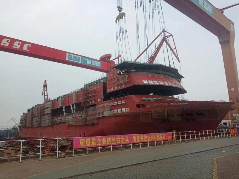 ????廣船國(guó)際自2月10日起復(fù)工復(fù)產(chǎn),其中阿爾及利亞客滾船建造是廣船國(guó)際重點(diǎn)工作之一。廣船國(guó)際先后克服勞動(dòng)力不足和資材供應(yīng)受阻等客觀困難,逆“疫”而上,確保該船順利出塢。