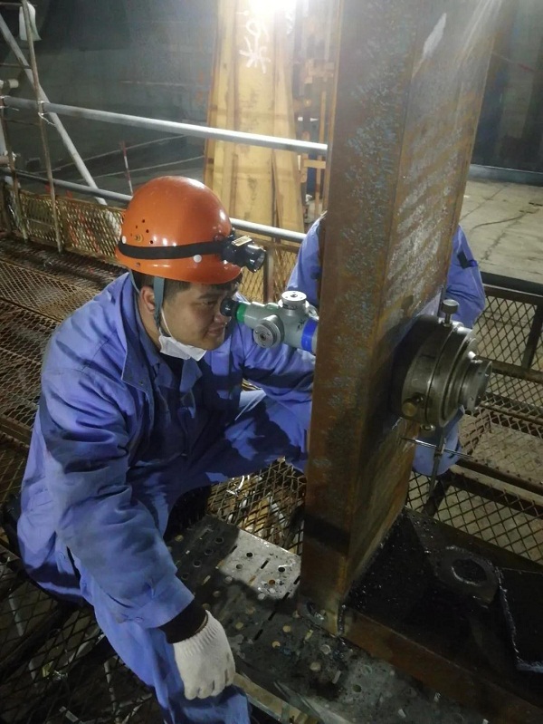 為確保VLCC照光工作順利完成,大船集團輪機工藝小組,提前一周就進入“作戰(zhàn)”狀態(tài),他們每天堅持深入現(xiàn)場,從細(xì)小處入手,檢查每一個可能影響軸舵系施工質(zhì)量的隱患,加班加點成了工作的常態(tài)。