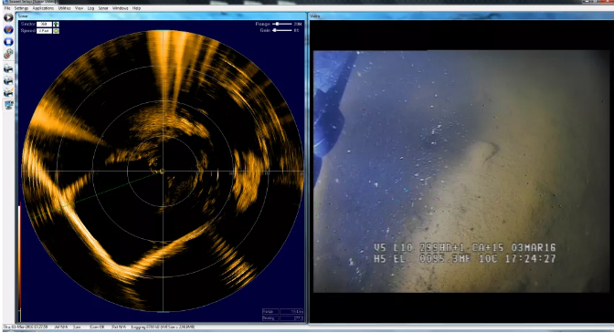 七〇二所利用機(jī)器人及探測聲吶對沉井封底前的基底以及沉井地面進(jìn)行了檢查??蒲腥藛T通過操縱水下機(jī)器人及探測聲吶對6座水下橋墩共72個井口進(jìn)行視頻探測、聲吶掃描,讓施工方能夠直觀地看到水底情況,并測量出淤泥的高度、厚度,發(fā)現(xiàn)水底障礙物,為精確實(shí)施井孔內(nèi)抓泥、清除江底沉積障礙物提供了科學(xué)的數(shù)據(jù)支撐,有效避免了可能發(fā)生的立管傾斜等工程建設(shè)風(fēng)險,為高質(zhì)量建成滬蘇通長江公鐵大橋增添了閃亮的中國船舶科技色彩。