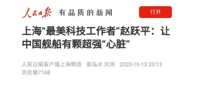 ????中國(guó)船舶集團(tuán)七〇四所首席專家趙躍平,獲評(píng)2020年上海地區(qū)“最美科技工作者”。
