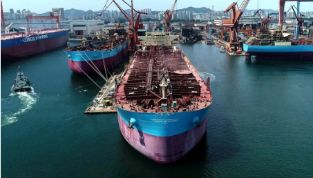 1月4日,中國船舶集團旗下大船集團為馬士基油輪建造的11.5萬噸原油/成品油船44號船簽字交付。該船總長250米,型寬44米,型深21.9米,載重噸為11.5萬噸,結(jié)構(gòu)吃水15.35米,設(shè)計航速14.5節(jié),掛新加坡旗,入英國勞氏船級社。為了滿足節(jié)能設(shè)計要求,該船螺旋槳前方的船體艉軸管上安裝節(jié)能型導輪,螺旋槳輕轉(zhuǎn)裕度不低于3%。