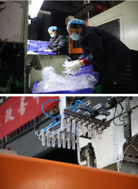 為保障防疫物品供應(yīng),春節(jié)期間,前衛(wèi)公司精密模塑產(chǎn)業(yè)生產(chǎn)車間24小時不停機。各機臺滿負(fù)荷運轉(zhuǎn),每天生產(chǎn)咽拭子棉簽棒1000萬支,一次性保存管70萬支,為全國核酸檢測能力的提升提供了強有力的保障。