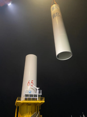 同日,中國海裝如東協(xié)鑫項目完成3臺機組吊裝,H3項目完成1臺機組吊裝。