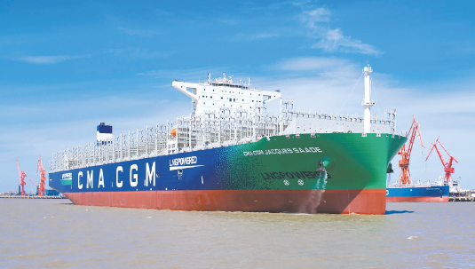 ——2020年9月,自主建造交付世界上首艘以LNG 為主要?jiǎng)恿Φ膰嵨蛔畲?、集成世界最先進(jìn)技術(shù)、環(huán)保性能最優(yōu)的23000TEU雙燃料動(dòng)力集裝箱船“達(dá)飛雅克·薩德”號(hào),并實(shí)現(xiàn)批量交付,進(jìn)一步鞏固了滬東中華在超大型集裝箱船建造領(lǐng)域的行業(yè)領(lǐng)軍地位。這艘被譽(yù)為海上“綠巨人”的雙燃料動(dòng)力集裝箱船,備受業(yè)界廣泛關(guān)注,她的成功建成交付是我國(guó)船舶工業(yè)高質(zhì)量發(fā)展取得的重要成果,彰顯了滬東中華雄厚的建造實(shí)力,也標(biāo)志著中國(guó)船舶集團(tuán)在世界大型集裝箱船領(lǐng)域成功實(shí)現(xiàn)從跟隨到引領(lǐng)。