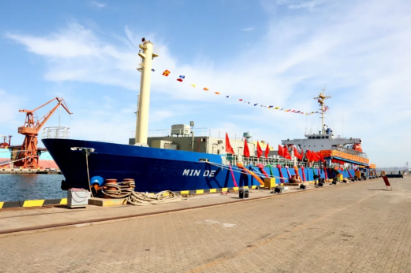 2020年,中國船舶集團旗下大船集團將散貨船改裝而成的“民德”號交付。這是全球首制、具有完全自主知識產(chǎn)權(quán)的舷側(cè)開孔式養(yǎng)殖工船,具有魚類養(yǎng)殖、餌料加工、活魚運輸?shù)裙δ堋=淮耐瑫r,大船集團與東方漁業(yè)簽約10+8艘大型養(yǎng)殖工船項目。