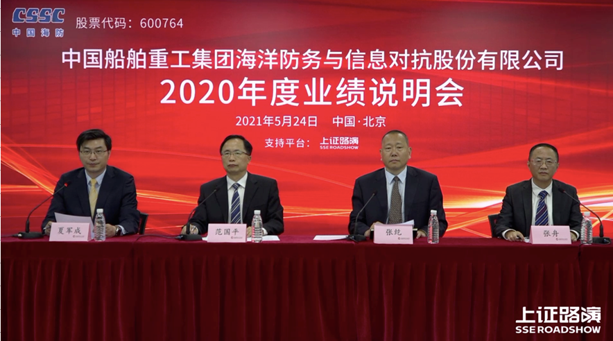 5月24日,中國船舶集團旗下中國海防(600764.SH)召開2020年度業(yè)績說明會,通過上證路演平臺視頻直播和網(wǎng)絡文字互動的方式,與廣大投資者溝通交流。中國海防董事長及公司高管出席會議。