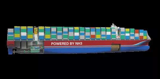 大船集團(tuán)與曼恩能源方案、英國勞氏船級(jí)社(LR)共同開發(fā)了“C-FUTURE” 零碳排放23000箱超大型集裝箱船。LR頒發(fā)了AIP證書。該船型率先提出“C-FUTURE”概念,創(chuàng)新性的采用液氨為動(dòng)力燃料,實(shí)現(xiàn)船舶零碳排放;曼恩最新研發(fā)的液氨燃料主機(jī)和大船集團(tuán)自主研發(fā)的燃料供應(yīng)系統(tǒng),匹配大型可調(diào)螺距螺旋槳,配合軸帶發(fā)電機(jī),提供船舶推進(jìn)動(dòng)力和電力供應(yīng);常壓、低溫、低蒸發(fā)率、高艙容利用率的A型燃料艙,為船舶提供了充沛續(xù)航。