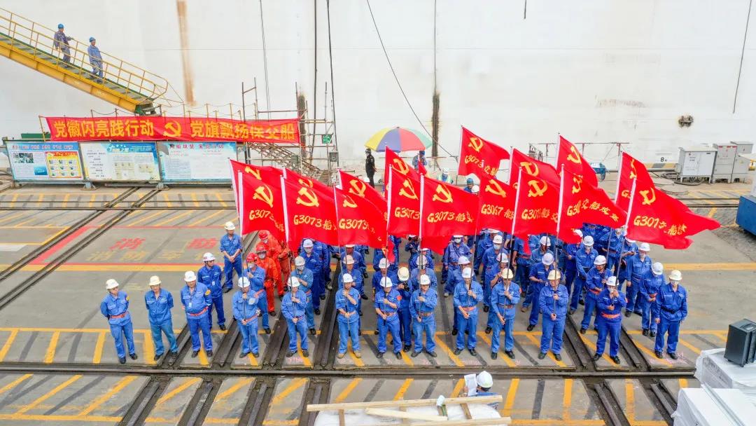 在集團公司會議精神的指引和“大干120天”攻堅活動號召下,廣船國際各個重點項目生產(chǎn)一線黨旗飄揚、黨徽閃耀,攻堅團隊奮勇爭先、信心滿滿,正在繼續(xù)向完成全年任務(wù)目標(biāo)發(fā)起沖鋒。
