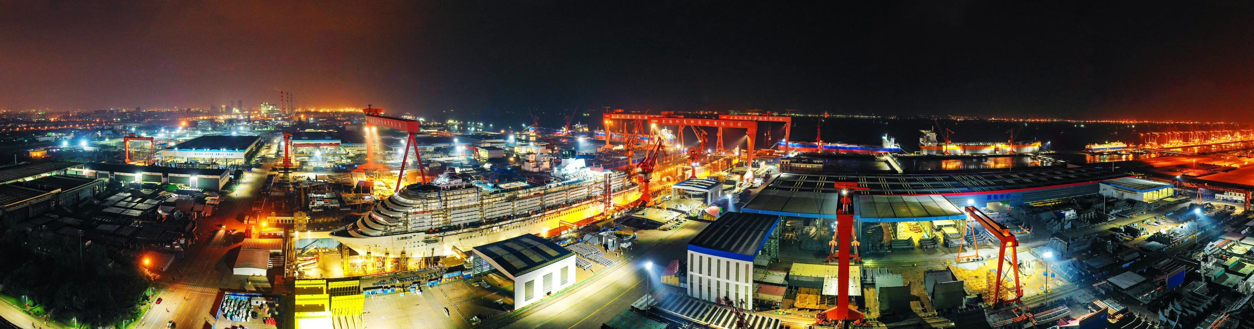 十月金秋結(jié)碩果,外高橋造船提前兩個半月完成了2021年度交船19艘/座的生產(chǎn)任務(wù),燈火通明的廠區(qū)超廣角視圖充分體現(xiàn)了外高橋造船人持續(xù)保障大型郵輪項目高效運行,努力完成民船、海工、郵輪產(chǎn)品的設(shè)計建造任務(wù)、爭取以超額完成全年目標的決心和信心。