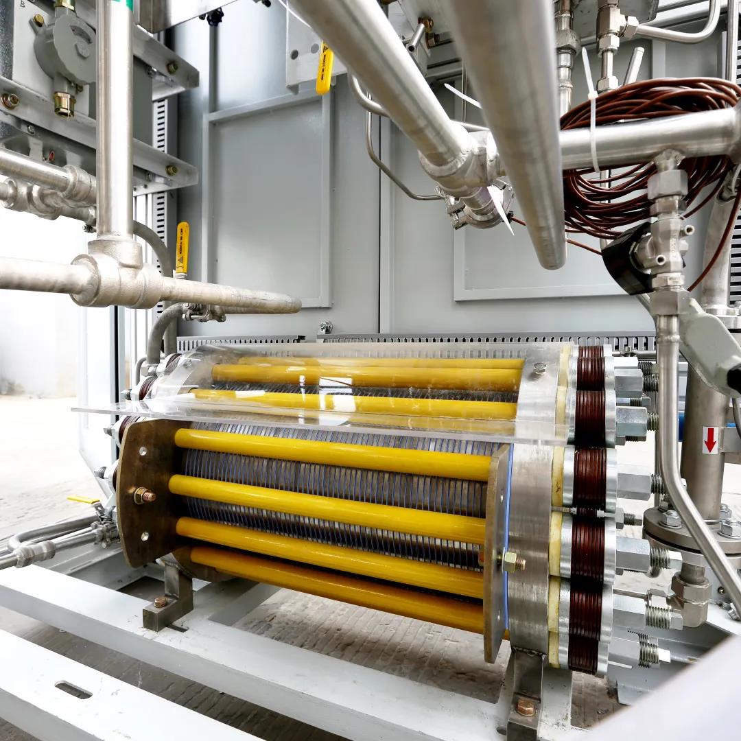 該設(shè)備為雙極壓濾式加壓水電解制氫裝置,能夠高效制取氫氣,能耗低、安全性能優(yōu)越,可年均節(jié)省電費百萬元。