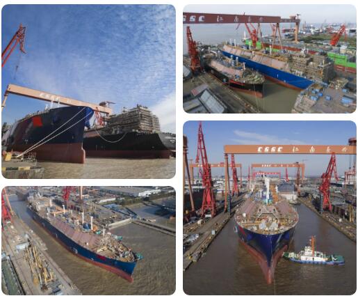 11月23日,滬東中華2號船塢內(nèi)一艘174000立方米LNG船、一艘79960立方米LNG船、半艘174000立方米LNG船實(shí)現(xiàn)3船起浮、2船出塢,這也是滬東中華歷史上首次實(shí)現(xiàn)2艘LNG整船同塢同日下水。