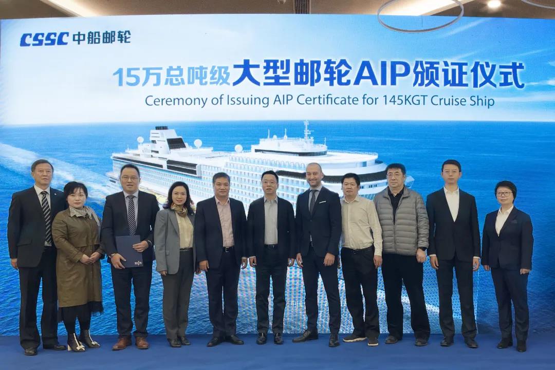 12月9日,中國(guó)船舶集團(tuán)旗下中船郵輪自主研發(fā)設(shè)計(jì)的15萬(wàn)總噸級(jí)大型郵輪獲得意大利船級(jí)社原則性認(rèn)可(AIP)證書(shū)。這是中國(guó)首次獨(dú)立自主研發(fā)設(shè)計(jì)的完全擁有自主知識(shí)產(chǎn)權(quán)的大型郵輪,一舉打破國(guó)外在該領(lǐng)域長(zhǎng)期技術(shù)封鎖和壟斷,開(kāi)啟中國(guó)大型郵輪自主設(shè)計(jì)新時(shí)代。中國(guó)船舶集團(tuán)黨組成員、副總經(jīng)理盛紀(jì)綱出席授證儀式并講話。