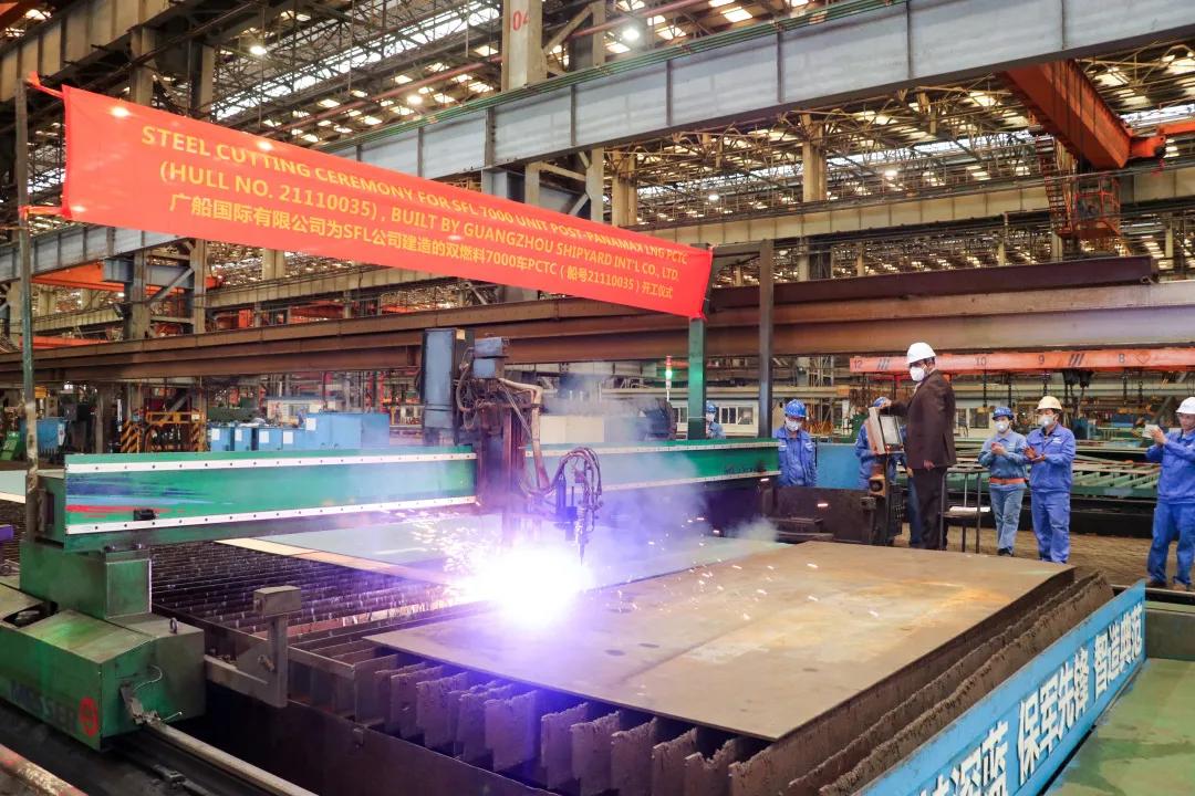 2月18日,廣船國(guó)際為挪威SFL公司建造的7000車雙燃料汽車運(yùn)輸船(PCTC)首制船舉行開工儀式,這是華南地區(qū)建造的首艘雙燃料汽車運(yùn)輸船,也是廣船國(guó)際春節(jié)后開工建造的第一艘船。