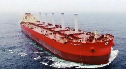 該船甲板上安裝4臺轉(zhuǎn)筒帆作為船舶輔助推進(jìn)動力裝置,也是全球首艘安裝風(fēng)動節(jié)能裝置的散貨船。
