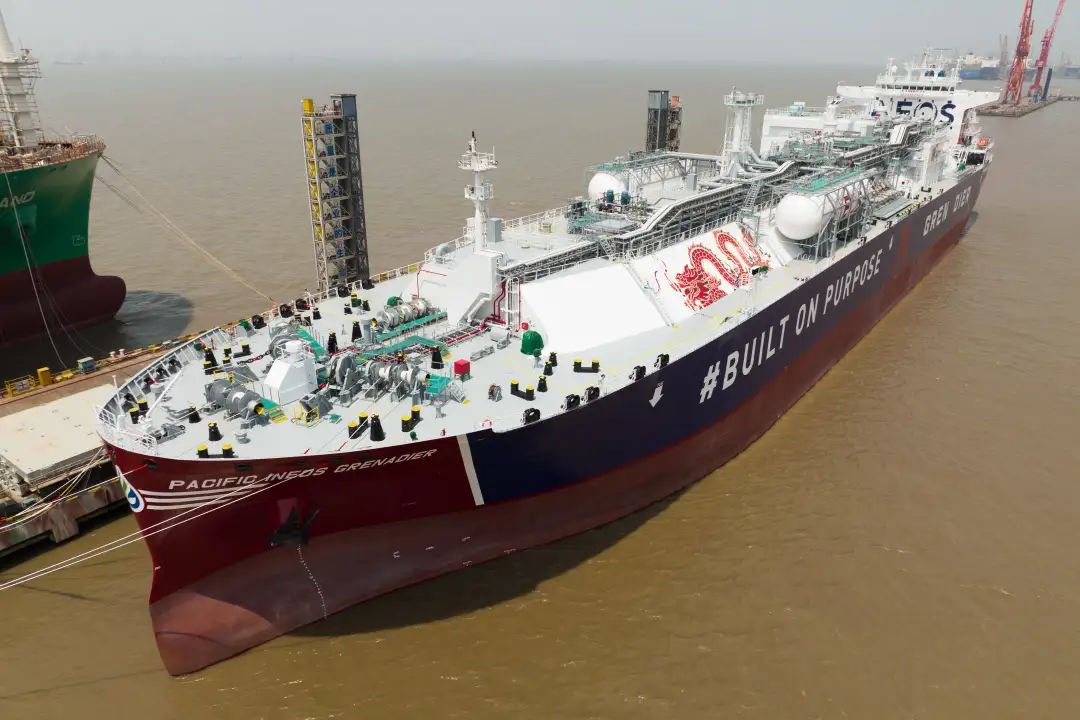 5月16日,中國船舶集團(tuán)旗下江南造船為浦銀租賃和山東海洋集團(tuán)下屬太平洋氣體船(香港)控股有限公司(PACIFIC GAS)建造的99000立方米B型艙超大型乙烷運(yùn)輸船(VLEC)“PACIFIC INEOS GRENADIER”號(hào)交付。