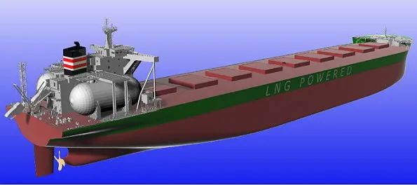 18萬噸好望角型雙燃料散貨船由外高橋造船自主設(shè)計,采用LNG燃料和傳統(tǒng)燃料油驅(qū)動,共配置兩個C型LNG燃料罐,可一次性滿足完成中國至澳大利亞航線兩個來回或中國至巴西航線一個來回的路程需求。在LNG燃料模式下,該船基本消除顆粒物和硫化物的排放,滿足國際海事組織IMO第四階段規(guī)范要求,具有綠色、環(huán)保、節(jié)能、安全等顯著特色。