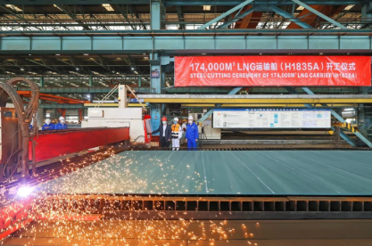在喜迎黨的二十大之際,中國船舶集團(tuán)旗下滬東中華生產(chǎn)捷報頻傳。10月14日,滬東中華為中國石油國際事業(yè)有限公司建造的17.4萬立方米大型液化天然氣(LNG)運(yùn)輸船、為法國達(dá)飛海運(yùn)集團(tuán)建造的全球首批1.3萬TEU液化天然氣(LNG)雙燃料動力超大型集裝箱船同日開工,還有一艘為上海申能集團(tuán)建造的8萬立方米LNG船主船體實(shí)現(xiàn)結(jié)構(gòu)成型。至此,在短短的一周時間里,滬東中華共實(shí)現(xiàn)了一船出塢、一船入塢、一船完成試航、一船主船體實(shí)現(xiàn)結(jié)構(gòu)成型、兩船開工等六大生產(chǎn)節(jié)點(diǎn),建造能級和效率不斷提升,掀起了“奮戰(zhàn)第四季度、勇奪全年目標(biāo)”的生產(chǎn)經(jīng)營新高潮。