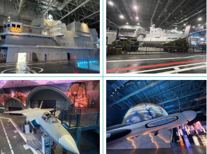 以先進武器裝備為原型,館內(nèi)建有全比例、高比例航母艦島、核潛艇、奮斗者號載人深潛器、殲20飛機、運20飛機、天宮空間站、星火號宇宙飛船、99A坦克等,集成聲光電、虛擬現(xiàn)實、動感平臺等對標國際一線主題樂園的體驗技術(shù),采用多種體驗形式和手段,編制精彩成長歷險故事,以主題游樂、研學教育、科普展示、文創(chuàng)商業(yè)等多種業(yè)態(tài),為游客帶來一場高科技、新技術(shù)的軍事主題沉浸體驗。